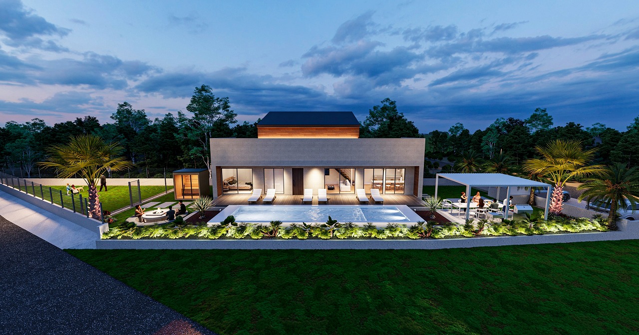 建築条件付土地販売 参考価格:1億2000万円 (土地を含む建物外構プールサウナ他一式)